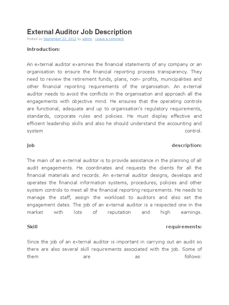 External Auditor Job Description Financial Audit Audit